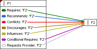 Model elements are represented in the graph as boxes containing the name of the element and an associated icon. Feature model elements are represented as shown in the next figure.