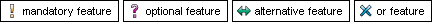 Model elements are represented in the graph as boxes containing the name of the element and an associated icon. Feature model elements are represented as shown in the next figure.